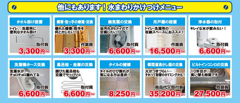 サービスメニュー 水まわり 内装 電気まわり 外まわり ハウスクリーニング お手伝い 不用品整理